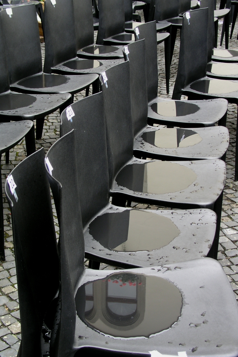 Aufgenommen kurz nach einem heftigen Regenguss im Innenhof des Konstanzer Rathauses. Einziger Farbklecks auf diesem Fast-Schwarz-Weiß-Foto sind die Geranien auf Platz 122.